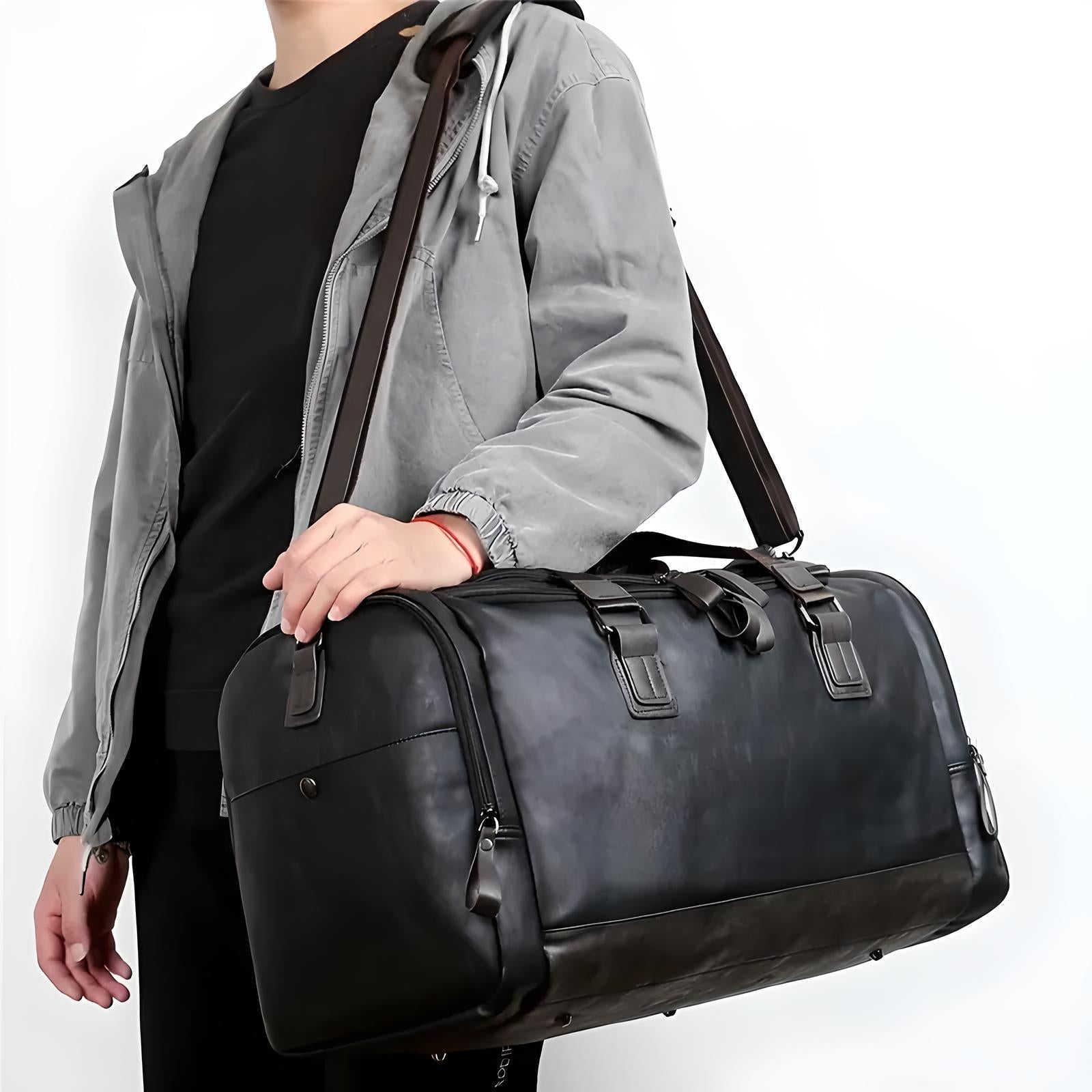 Travel in style with the Classy Men’s Leather Look Duffle Bag. Crafted for both short trips and daily use, this timeless bag combines functionality with a premium look – perfect for business travel, weekend getaways, or everyday carry.