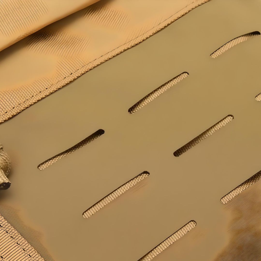 Rugged look with MOLLE webbing for add-ons and attachments.